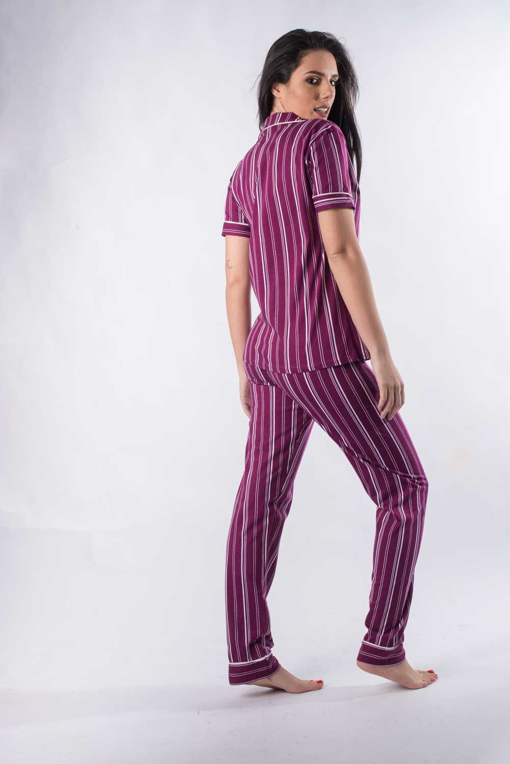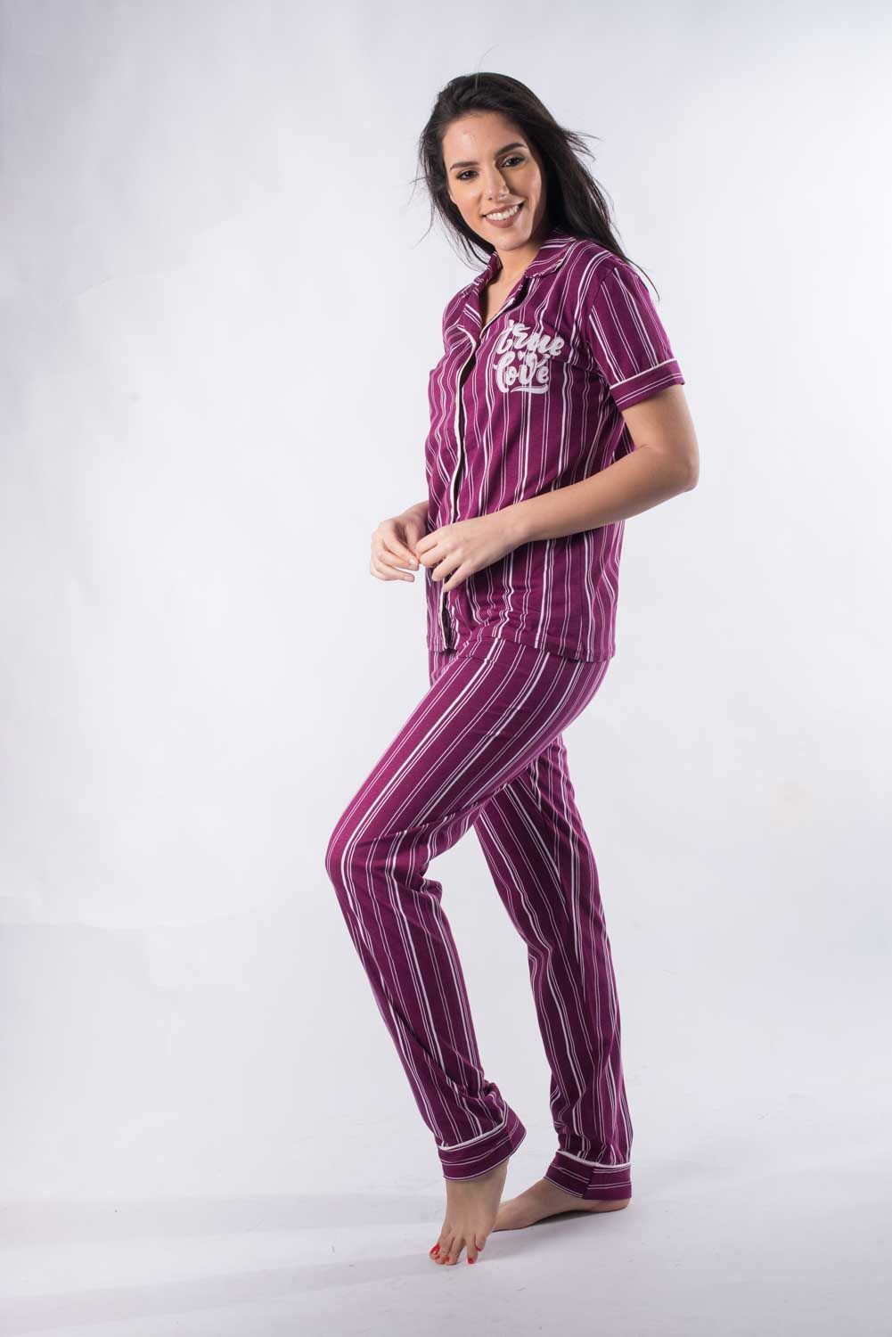 Γυναικεία πυτζάμα κοντό μανίκι μακρύ παντελόνιο κουμπωτή