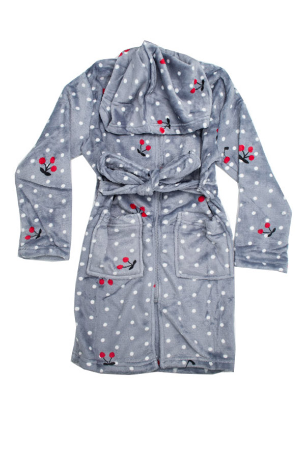 Παιδική ρόμπα κορίτσι με φερμουάρ γκρι κερασάκια