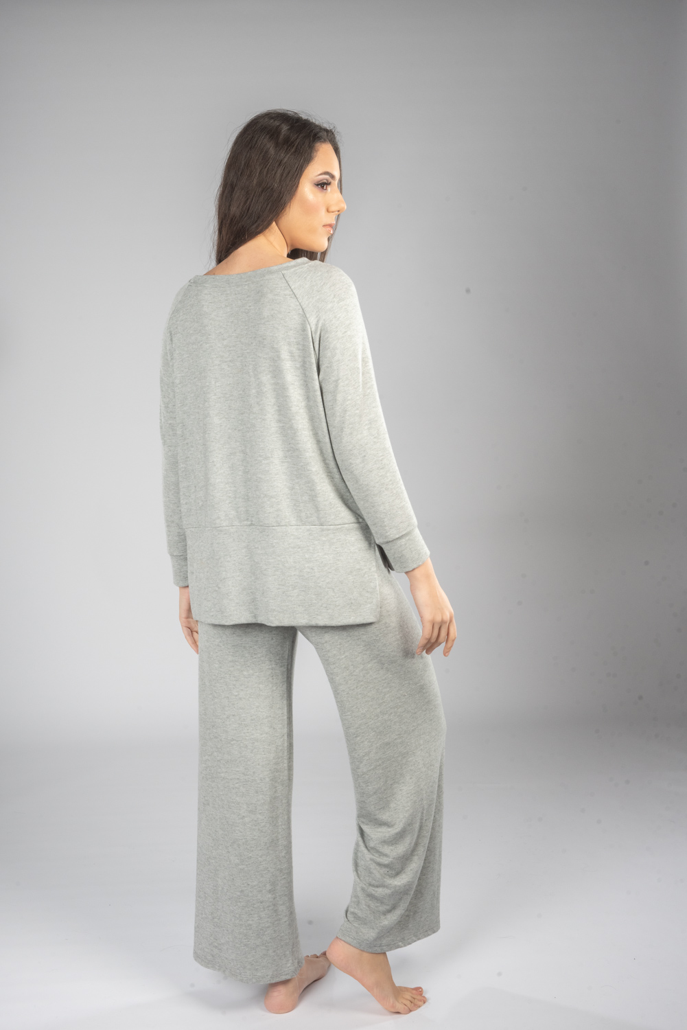 Γυναικείο σετ με λαιμόκοψη και άνετο παντελόνι σε one size γραμμή.
