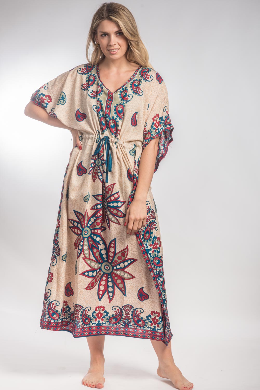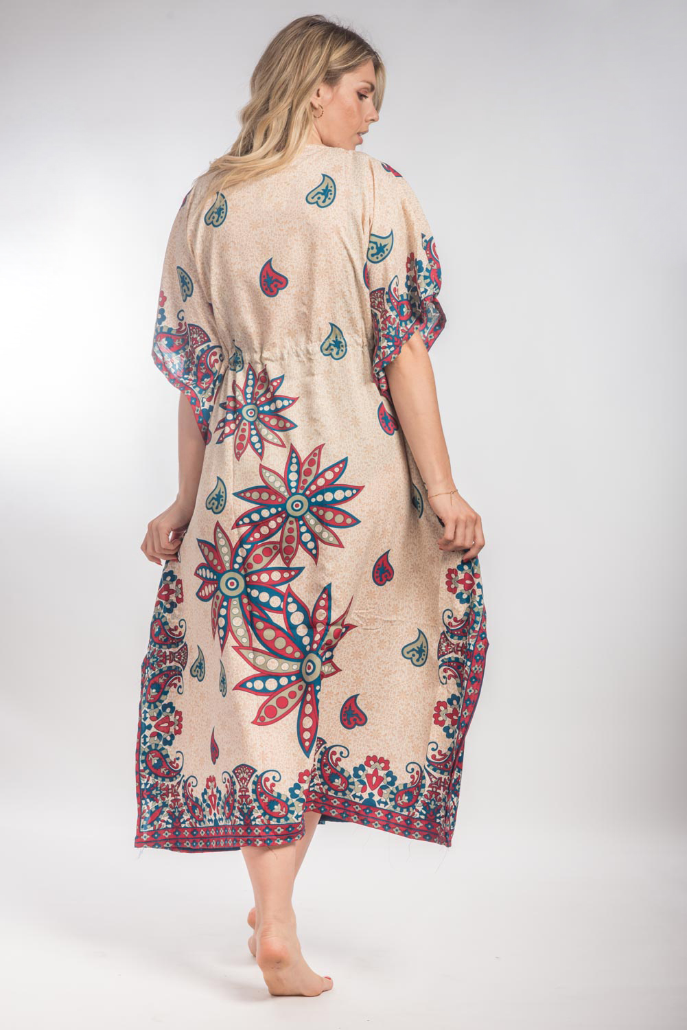 Γυναικείο καφτάνι με σχέδια πετρόλ