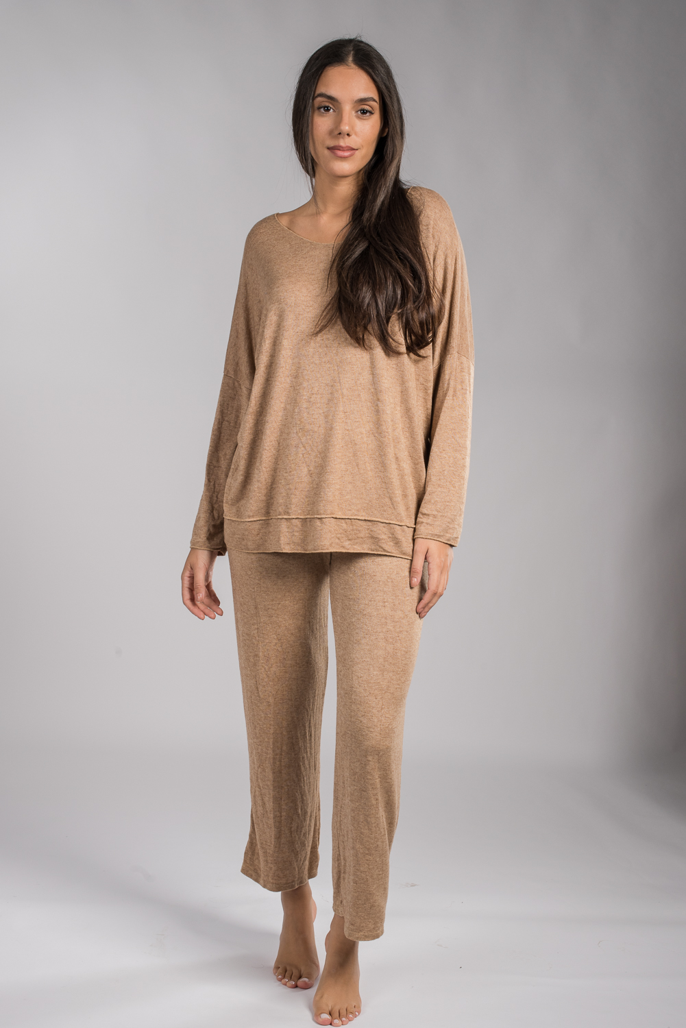 Γυναικείο σετ πλεκτό μπέζ σκούρο