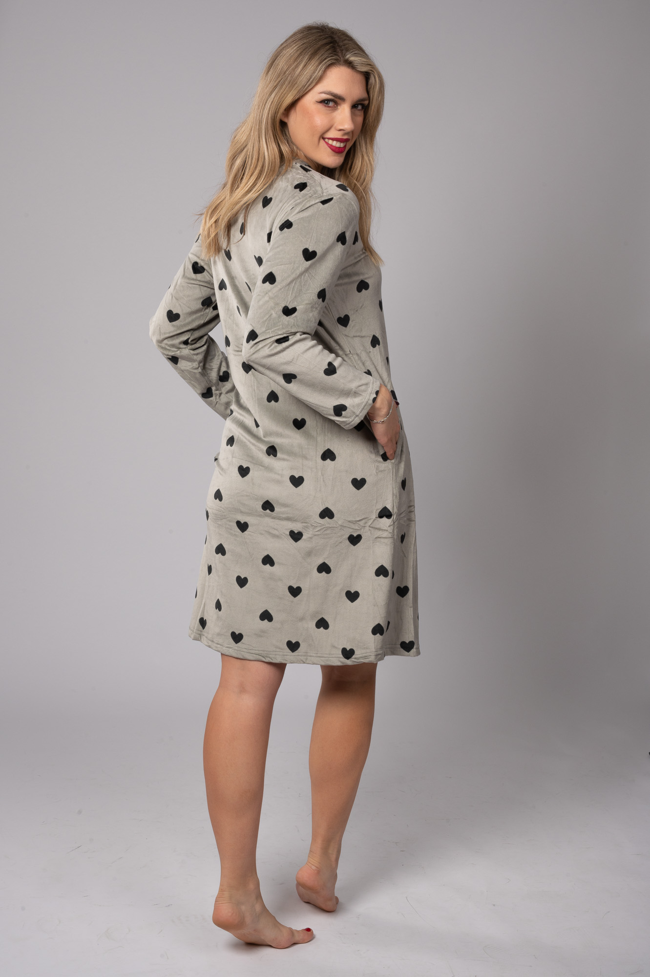 Γυναικείο νυχτικό βελούδο με καρδούλες