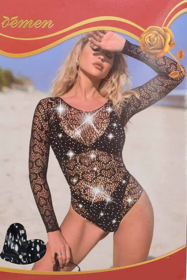 Εντυπωσιακό ολόσωμο διχτυωτό κορμάκι που συνδυάζει αισθησιασμό και κομψότητα. Το λεπτό, ελαστικό δίχτυ με ιδιαίτερο μοτίβο αγκαλιάζει το σώμα, ενώ το εσωτερικό σχέδιο τύπου μπικίνι δημιουργεί ένα σαγηνευτικό layering look. Τα μακριά μανίκια προσθέτουν στυλ και ισορροπούν ιδανικά τη διαφάνεια.