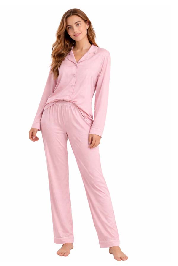 Γυναικεία πυτζάμα βαμβακερή με κουμπιά ροζ