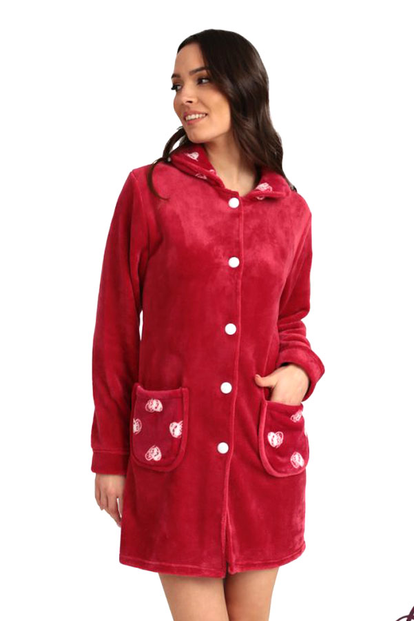 Γυναικεία ρόμπα κόκκινη με κουμπιά μονόχρωμη μεασαίου μήκους