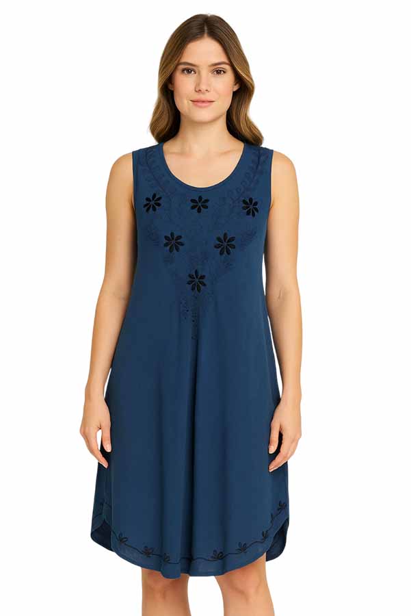 Γυναικείο καφτάνι μακρύ με κέντημα σε μπλε