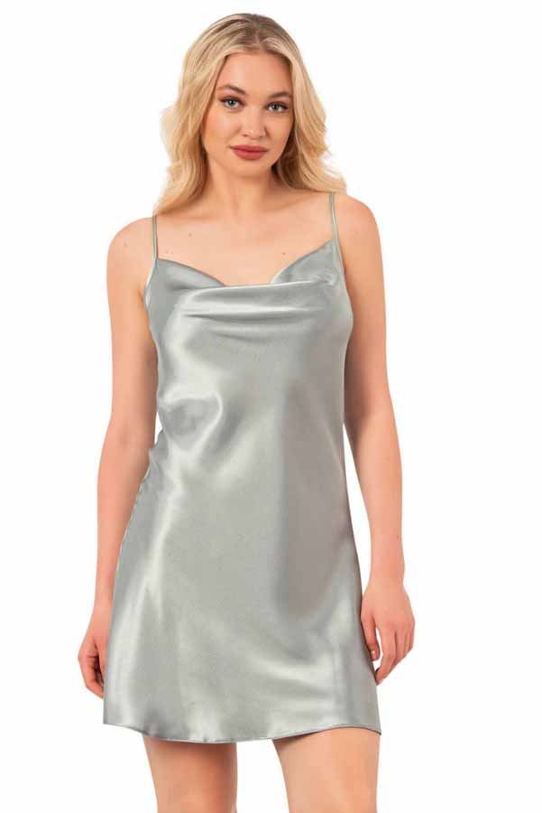 Γυναικείο σατέν νυχτικό ραντάκι σε γκρι χρώμα