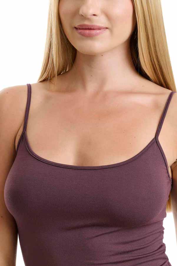 Γυναικείο τοπ με λεπτή τιράντα bamboo καφέ μπορντό